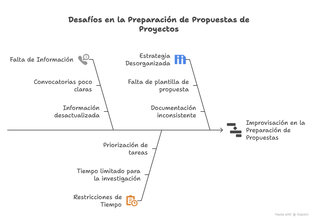 Esto lleva a una dinámica reactiva: vemos una convocatoria y corremos a intentar cumplir con los requisitos, sin tener una base sólida, documentos actualizados ni una narrativa clara del proyecto.