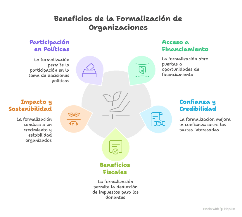 Una organización formal puede crecer de manera más organizada, estructurar equipos de trabajo, contratar personal, firmar convenios de colaboración y operar con mayor estabilidad a lo largo del tiempo.